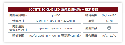 LOCTITE EQ CL42 LED 面光源固化箱须搭配LOCTITE EQ CL42 LED 面光源灯头与